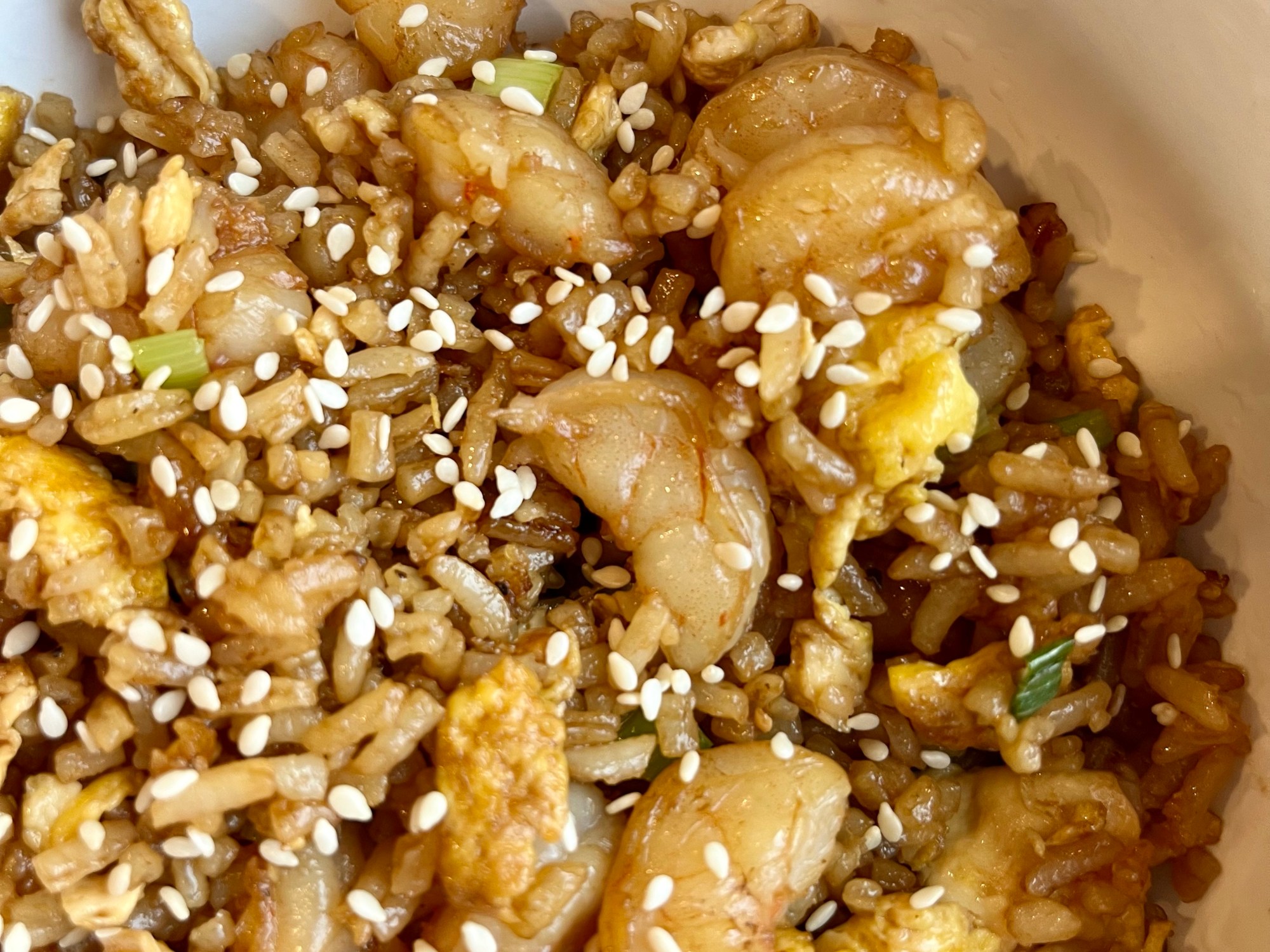 You can use this recipe for any fried rice and add in your protein of choice! Shrimp is easy because we keep it in the freezer and it quickly thaw out, but I have also done it with rotisserie chicken.