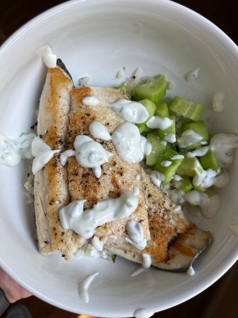 This was very much a throw it together and see what happens meal. It’s also very much on the light side if you’re looking for a low carb, high protein meal. The citrus mixed with the fish was the perfect pair. This could be made with any white fish or even shrimp, but we used trout because it’s easy and cheap! This recipe makes 4 servings.