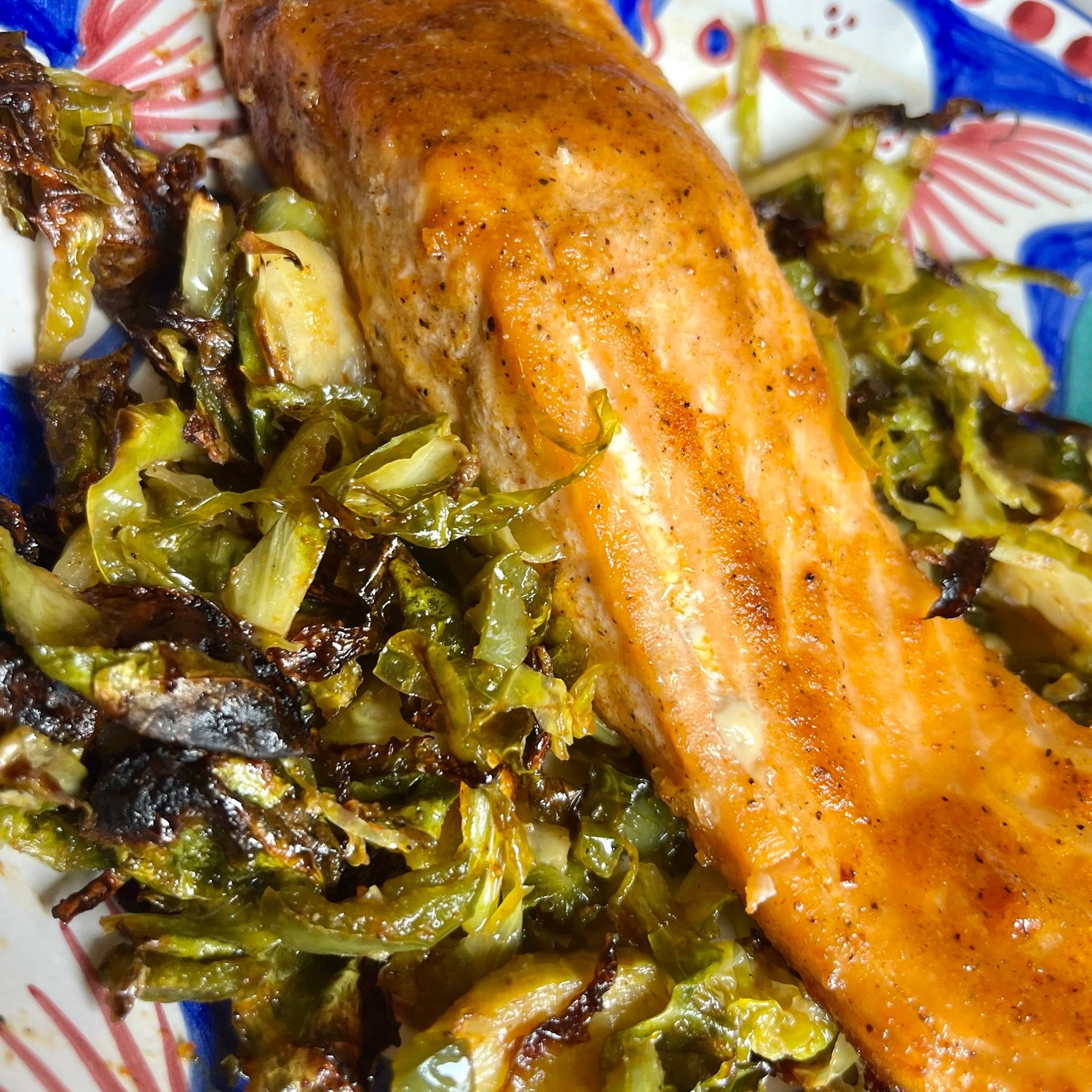 - Either toss the salmon in it or baste the mixture onto the salmon. Let it marinate while you prep the Brussels.
